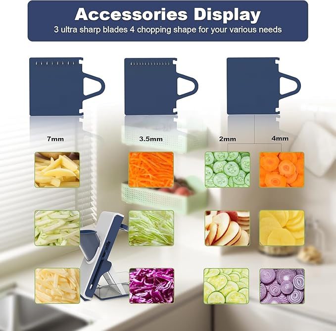 Upgrade your kitchen experience with this all-in-one vegetable slicer designed for safety, convenience, and premium performance. تم تصميمه ليجعل تقطيع الخضار والفواكه أسهل وأسرع من أي وقت مضى.